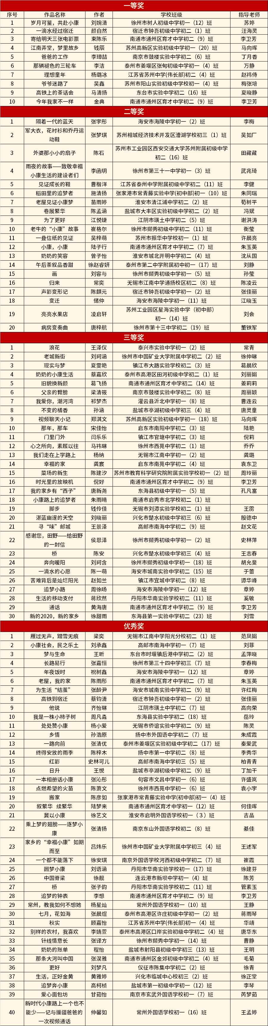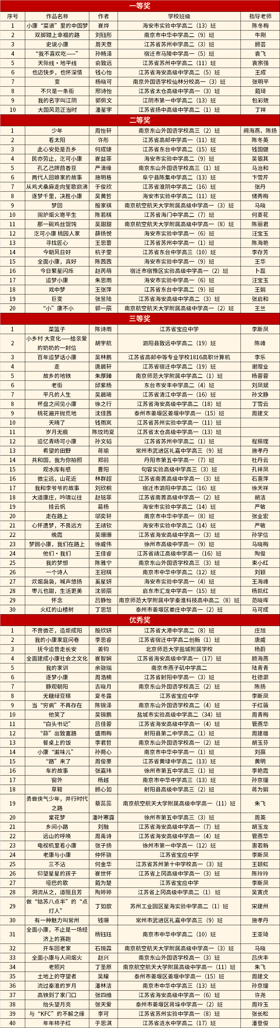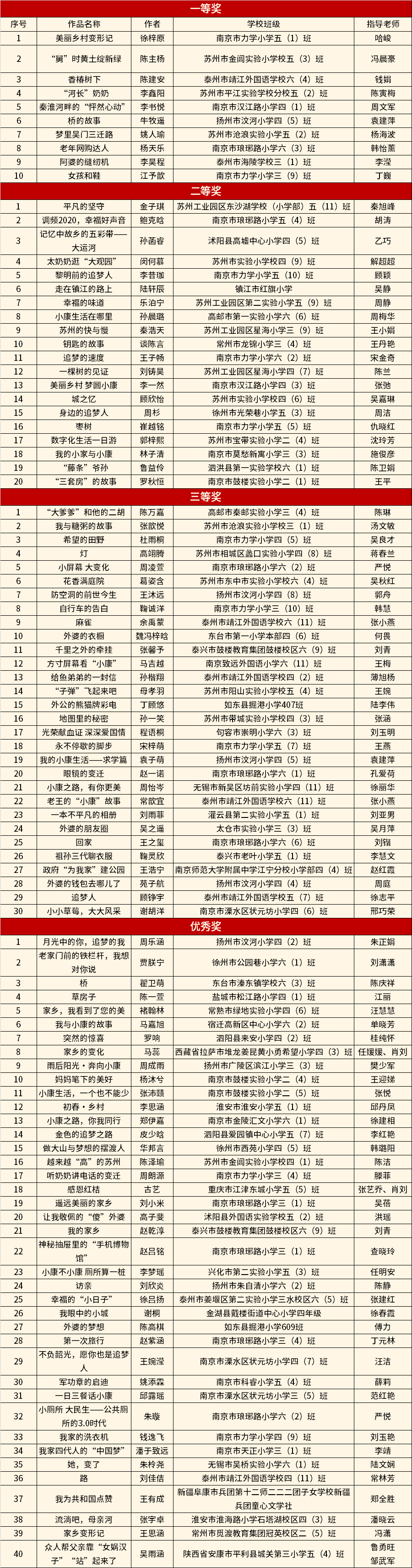 附:“全面小康 追梦成长”江苏省青少年征文大赛获奖名单