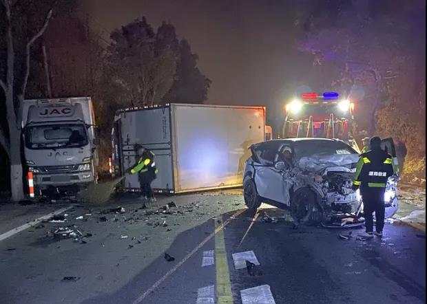 接到报警后,交警联动120、消防等救援力量快速到达事故现场,将货车司机、轿车副驾驶女子救出送往医院。