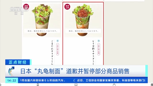 财经频道特约记者 刘耀鸿:我现在是在日本埼玉县八潮市,我身后就是日本餐饮企业 “丸龟制面”位于日本首都圈的一家门店,现在这里还在正常营业。丸龟制面是日本最大的乌冬面连锁品牌,在日本国内外拥有1000多家门店。针对有日本网民近日在社交媒体上曝光在“丸龟制面”新发售的配有沙拉的乌冬面里吃出活青蛙的照片和视频,昨天,该公司在官网上承认相关情况属实,并向消费者道歉。