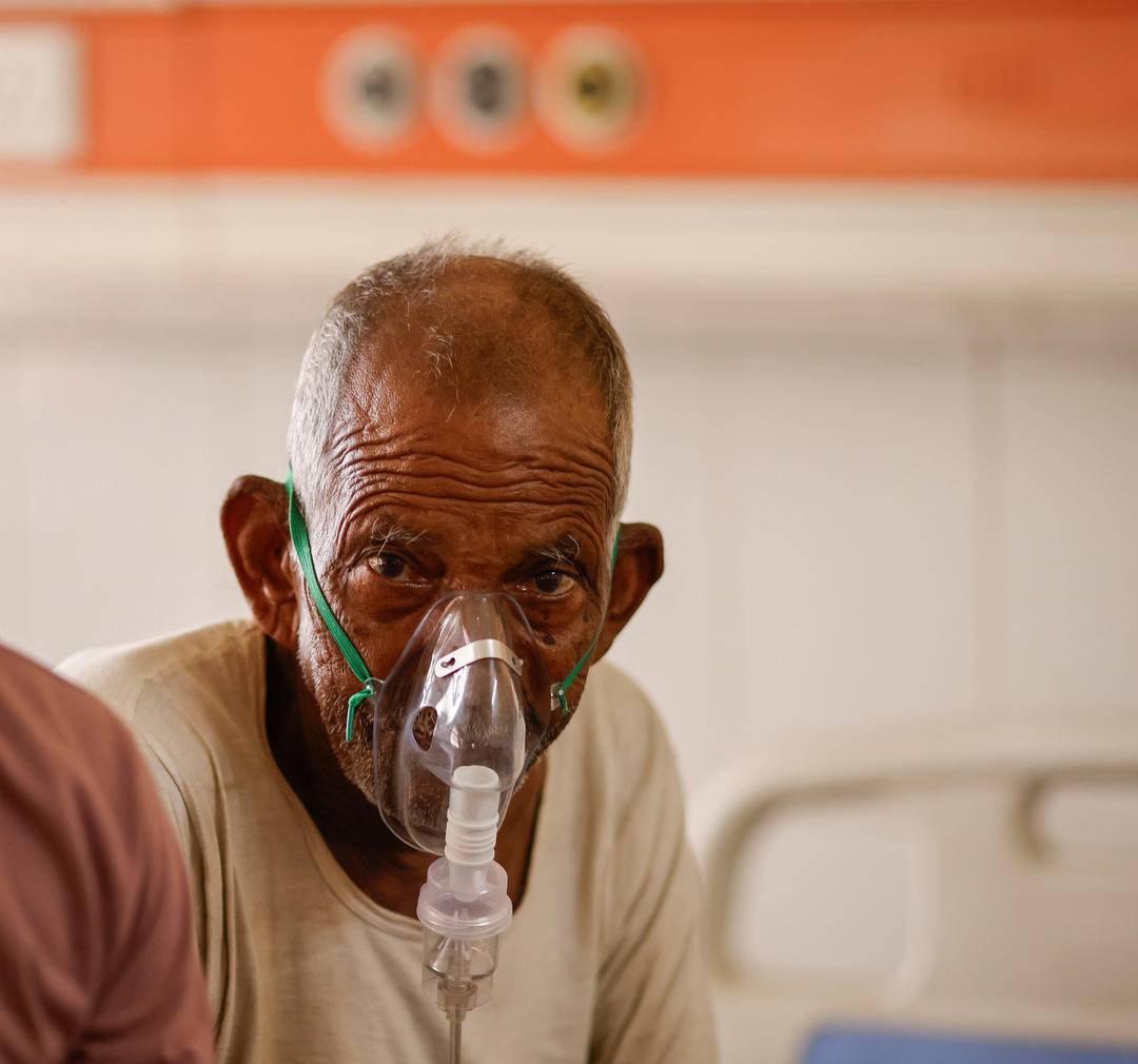 今年印度多地遭遇高温天气,很多老人因呼吸困难住院治疗。