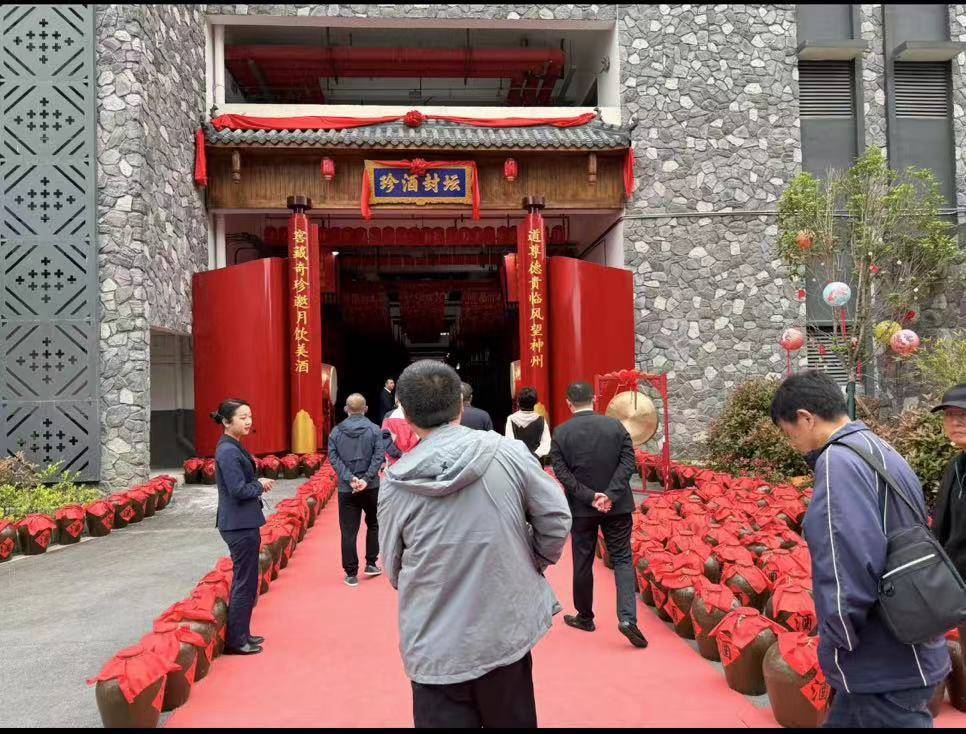 这次封坛封的是遵义的四大名酒之一——珍酒。珍酒是贵州的四大名酒之一。珍酒四字歌:中国白酒一号工程、中国酱香白酒第二股、贵州三大酱香品牌、中国四大国宴酒。而当时珍酒不对外开放,珍酒为茅台酒易地生产试验场。同时也是中国粮油食品进出口公司贵州分公司确定为招待外国领导人宴会的品牌酒之一。当年,时任国务院副总理方毅视察珍酒酒厂时,品尝了珍酒后,感觉酒品极佳,不输茅台欣然提笔写下了四个大字“酒中珍品”,这墨宝至今还悬挂在珍酒厂展示馆大厅门口。