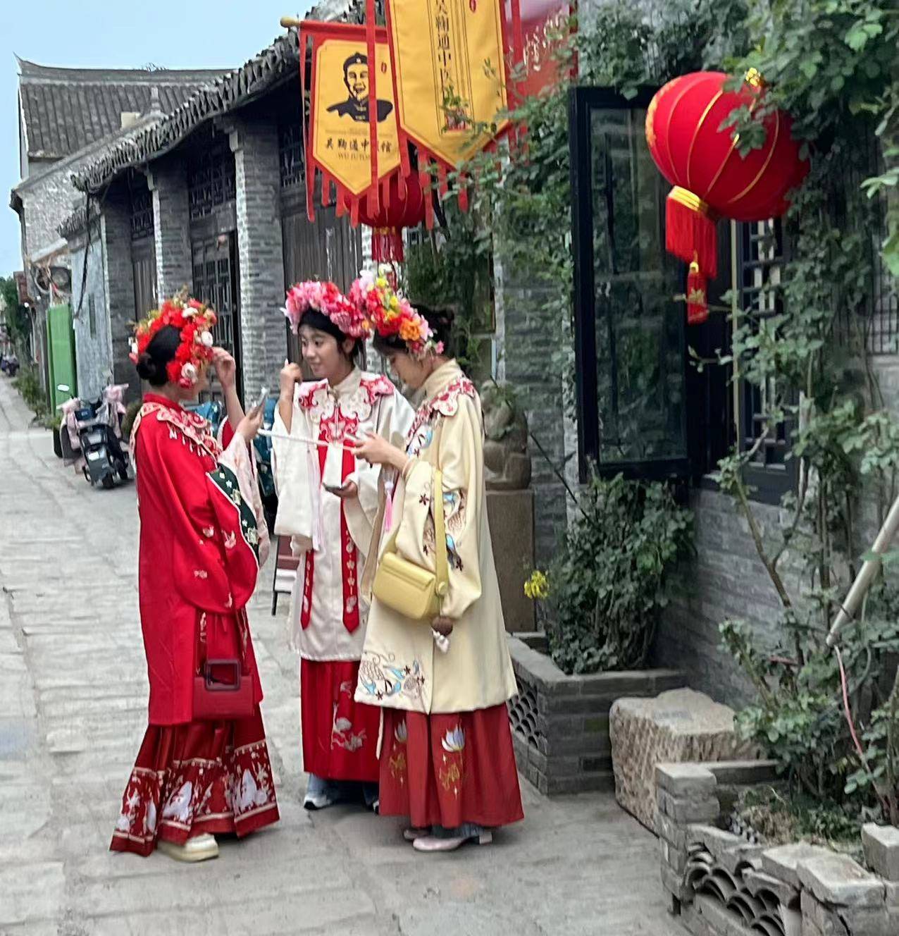 走过街巷,不时有人骑着电动车与我们擦肩而过,原来古老的街巷里依然居住着许多人家。那些摆放在家家户户门前的花草,悬挂在门口的灯笼带着浓厚的烟火气息,让人感到踏实而温暖。