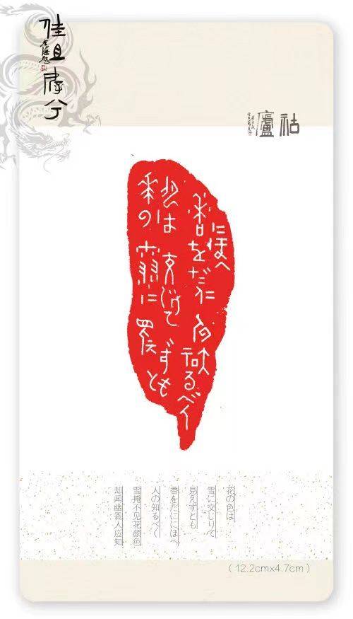 ▲和歌花の色は雪に交じりて見えずとも香をだににほへ人の知るベく雪掩不见花颜色 却闻幽香人应知12.2cmX4.7cm