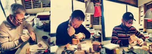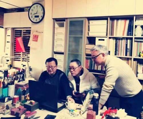 ▲2024年1月,吴卫东(左)胡轮(中)庞跟泽(右)在“承园”工作室筛选作品