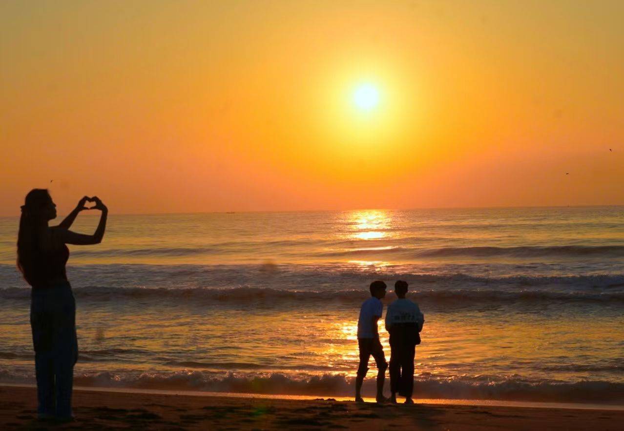 凌晨5时38分,东方地平线上,时隐时现出现淡淡的红晕,渐渐像一名画家挥毫作画,一轮希望的日出冉冉升起,霞光映照下的大海波光粼粼,人们欢呼雀跃,纷纷举起手机、相机取景拍照,仿佛步入了一个神奇的童话世界。