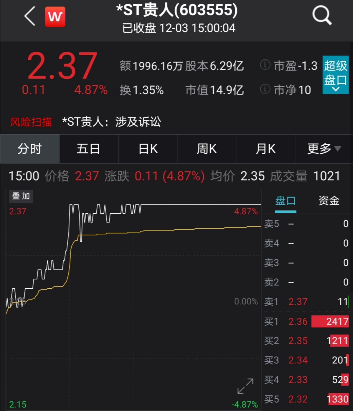 贵人鸟还被多起诉讼缠身。12月1日晚间,贵人鸟股份有限公司(603555 *ST贵人)发布涉及诉讼公告,由于流动性紧张,公司未能按时支付各家银行贷款本金和利息,公司在各家银行的贷款本金合计14.10亿元已全部逾期,近期,由于公司未能按期偿还贷款本息,恒丰银行股份有限公司泉州分行向泉州市中级人民法院提起诉讼申请,泉州市中级人民法院受理了上述申请。此次涉案金额为4568.74万元。