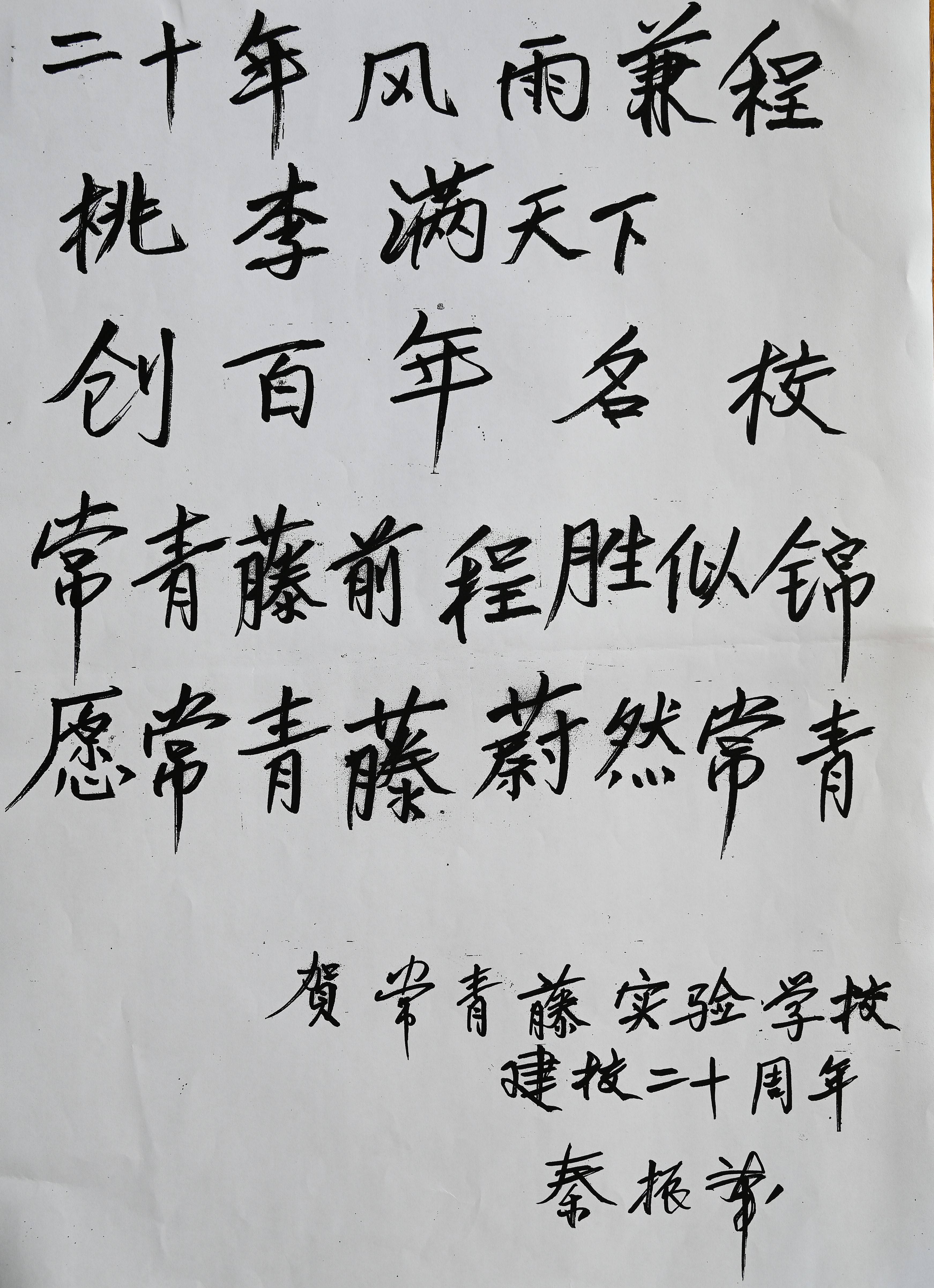 “二十年风雨兼程,桃李满天下,创百年名校,常青藤前程似锦,愿常青藤蔚然常青。”打造张家港精神的张家港市委原书记秦振华对常青藤未来的发展充满希冀。