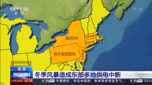 日前美国受冬季风暴带来狂风暴雨影响,美国东部多地大量用户的供电被中断。据当地媒体报道,新英格兰地区的阵风时速一度达到每小时104公里左右。