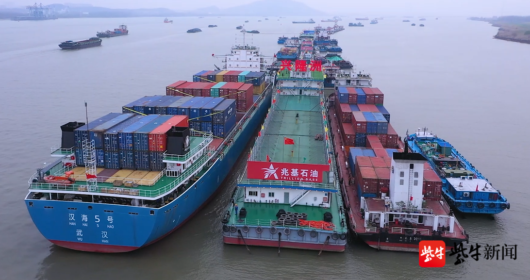 3月10日傍晚,全国内河最大集装箱船“汉海5号”货轮首航南京,靠泊长江上最大的“长江汇”水上绿色航运综合服务区,补给、移交航行途中产生的各类污染物。