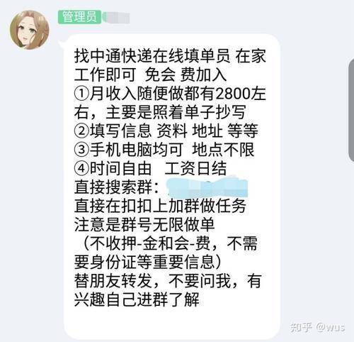 家住市区水木华园小区的杨女士是全职太太,每日将孩子送到学校后,便觉得无事可做,便想着在网上干个兼职贴补家用。找了一圈后,她觉得“时间和工作地点自由”这一点很难符合。前段时间,她在一个QQ群里看到有人发布“招聘快递单录入员”的信息,“工作简单,月收入可达万元,无需押金、在家工作、时间不限、手机电脑操作即可……”非常适合她这样的情况,但她又觉得这样的“好事”发生的概率较低,怀疑是虚假广告,看一眼就过去了。可随后,她又不断从其他多个QQ群和微信群看到类似的“招聘信息”,“如果是骗子,怎么会有那么多人发,还有人说自己试着做过了,感觉不错,会不会有些招聘是真的呢?”杨女士有些动摇了,但她记得去寄快递的时候,都是自己用手机扫码下单,单号立即就出来了,难道事后还要手动录入?