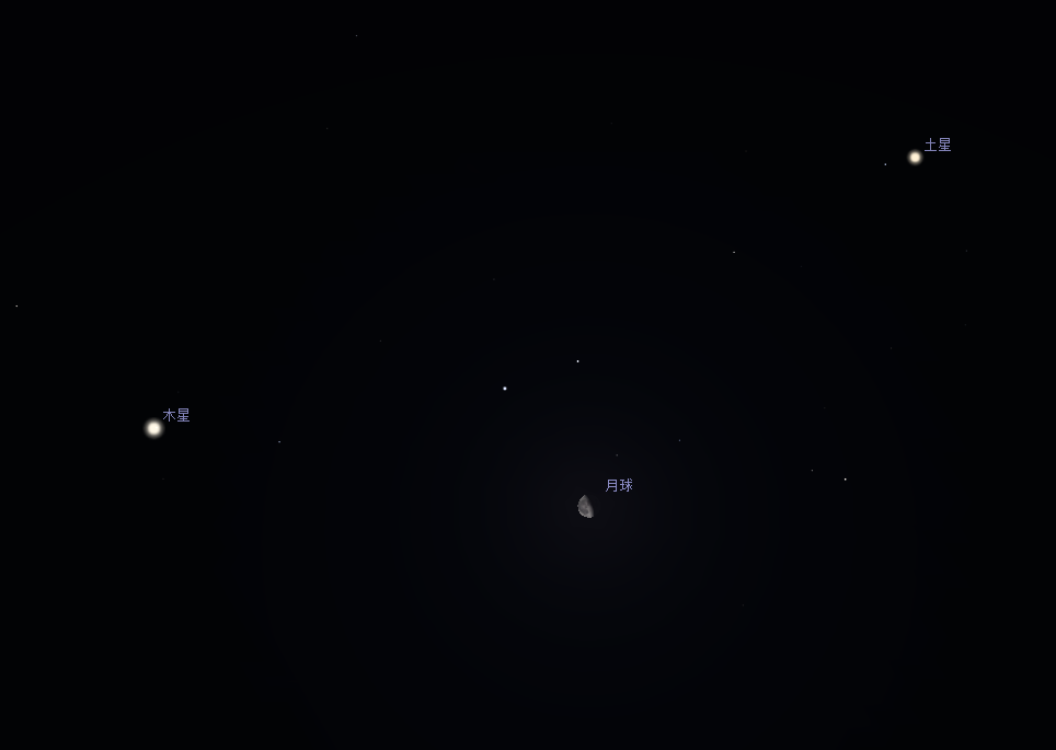 土星、木星相继于5月31日、6月1日合月,再次在天空上演双星伴月。6月1日,月球来到木星土星中间,在儿童节时在天空中露出了“笑脸”。