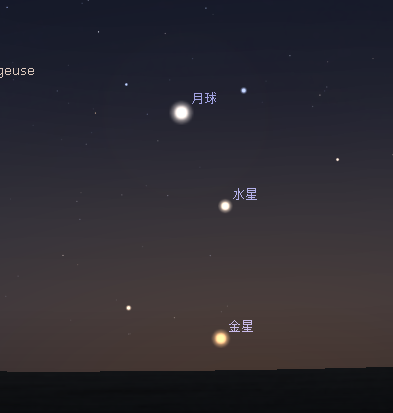 只要能看到金星,就能在它下面不到1°的地方找到水星,不过裸眼很难直接看到水星,需要借助普通的双筒望远镜或者小型天文望远镜。