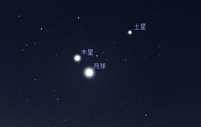 5月4日,5日土星与木星相继合月,土星、木星在天空中的位置较为接近,这两天将出现双星伴月的天象,日出前在东南方天空可以找到它们。