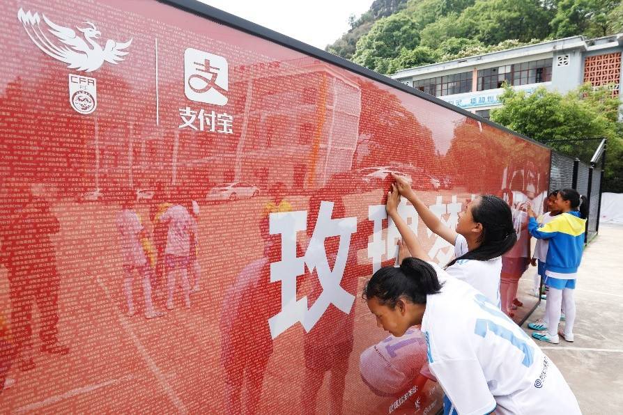4月7日-14日,围绕中国女足与韩国队的两场东京奥预赛附加赛,中国足协携手支付宝,在线上发起“一句话为中国女足加油”的社交活动,号召网友“为中国女足加油,共筑玫瑰梦想球场”,征集网友祝福的同时,也助力中国首座女足主题球场建立。伴随中国女足顺利出线,活动也最终征集到过亿网友祝福,中国足协与支付宝最终计划将球场建设地点确定在云南石林一座山区小学——石林彝族自治县长湖镇维则青联希望小学。这座小学也是乡村校园女足扶持项目“追风计划”支持的学校。