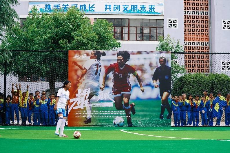 4月28日,这座女足主题球场举行落地仪式,中国足协副主席孙雯携刘爱玲、王丽萍走上球场向孩子们传授“绝技”,并寄语,希望女足精神可以一代代传承下去,激励更多女孩走上球场,爱上足球,收获快乐,以及更多人生可能性。