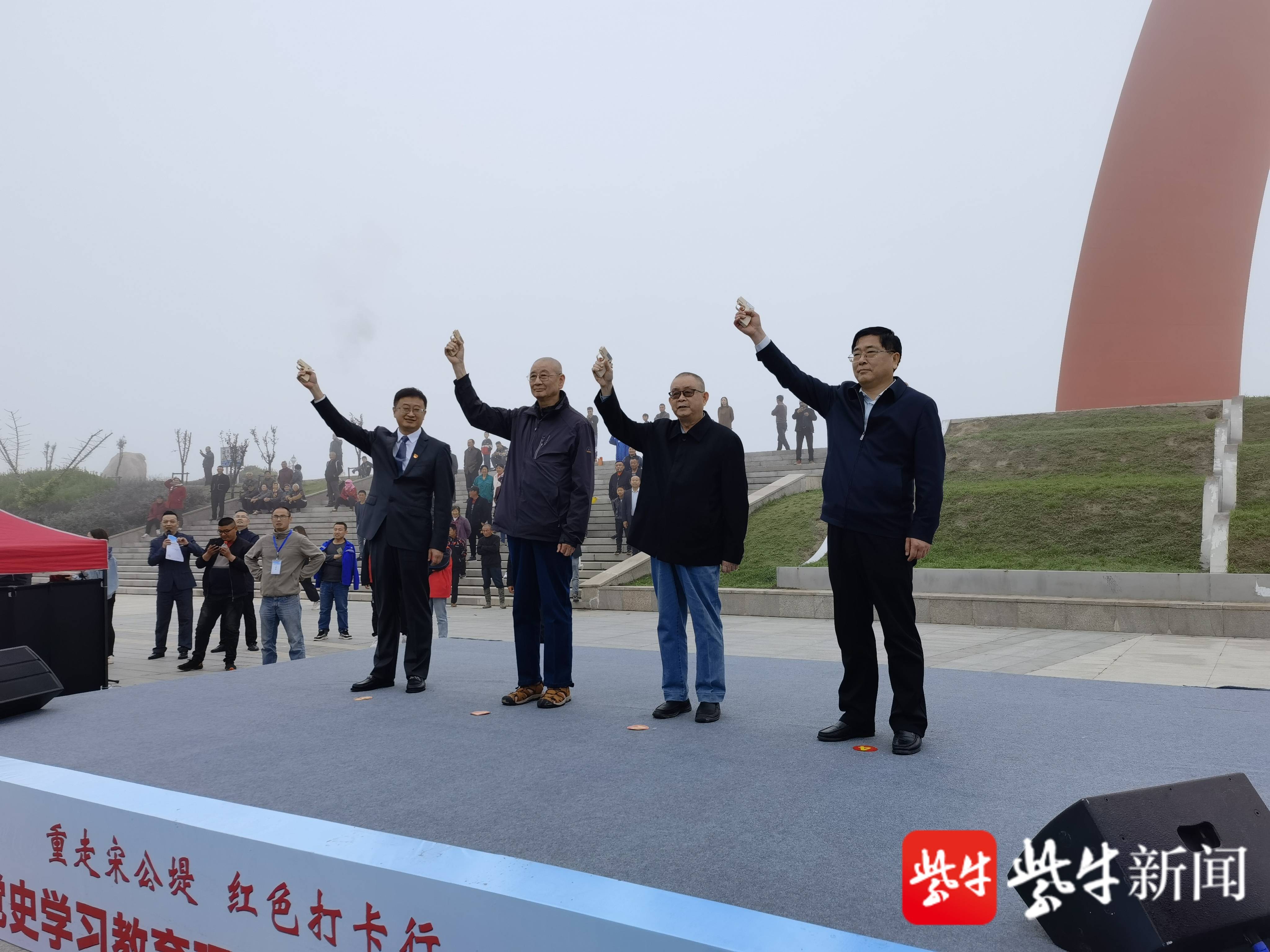 滨海县领导和宋公堤修建的后人鸣枪开跑
