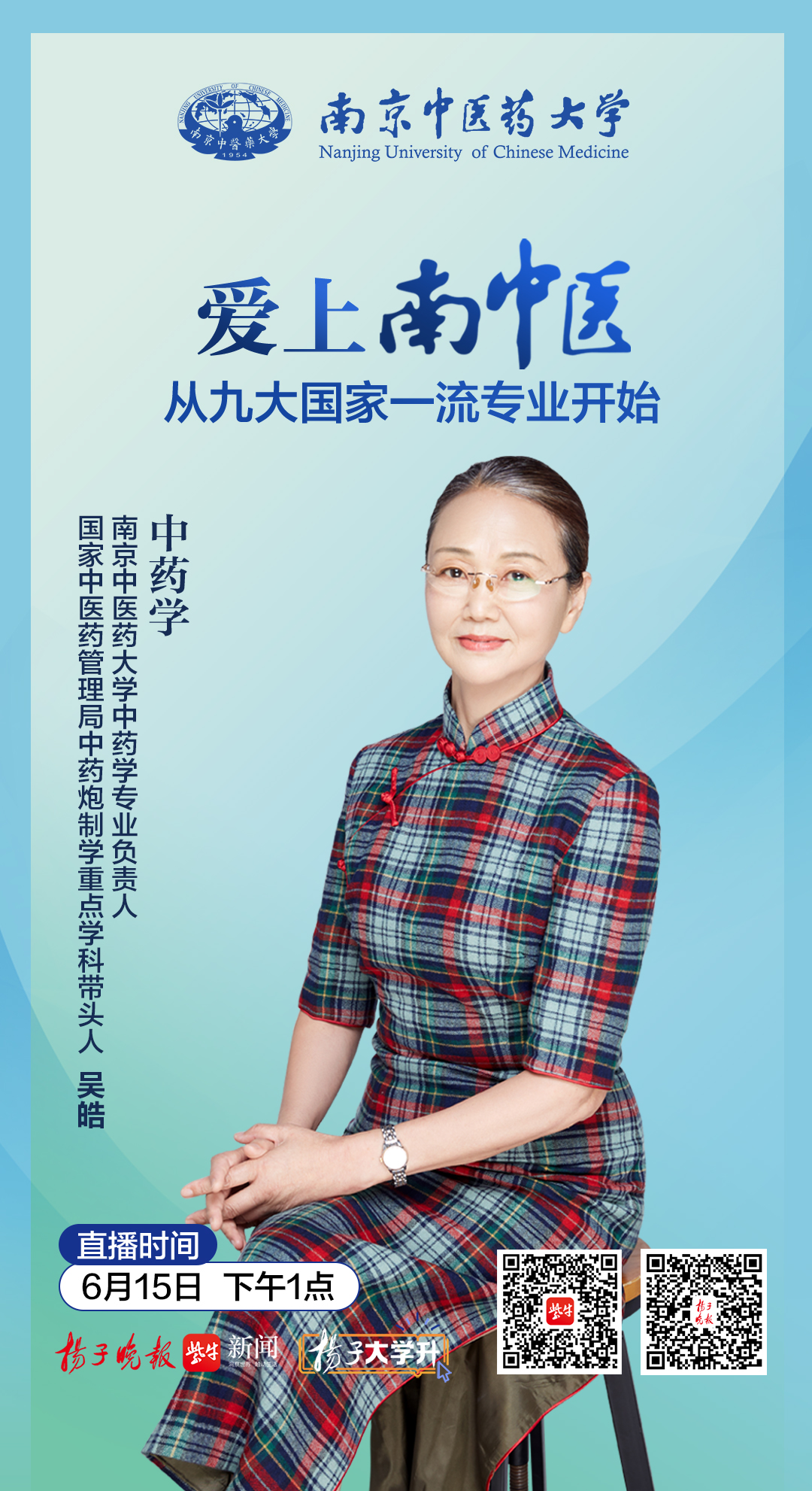 2021年南京中医药大学“爱上南中医 从九大国家一流专业开始”系列直播正在火热播出中,6月15日下午1点,让我们在直播间相约国家一流本科专业建设点中药学专业。
