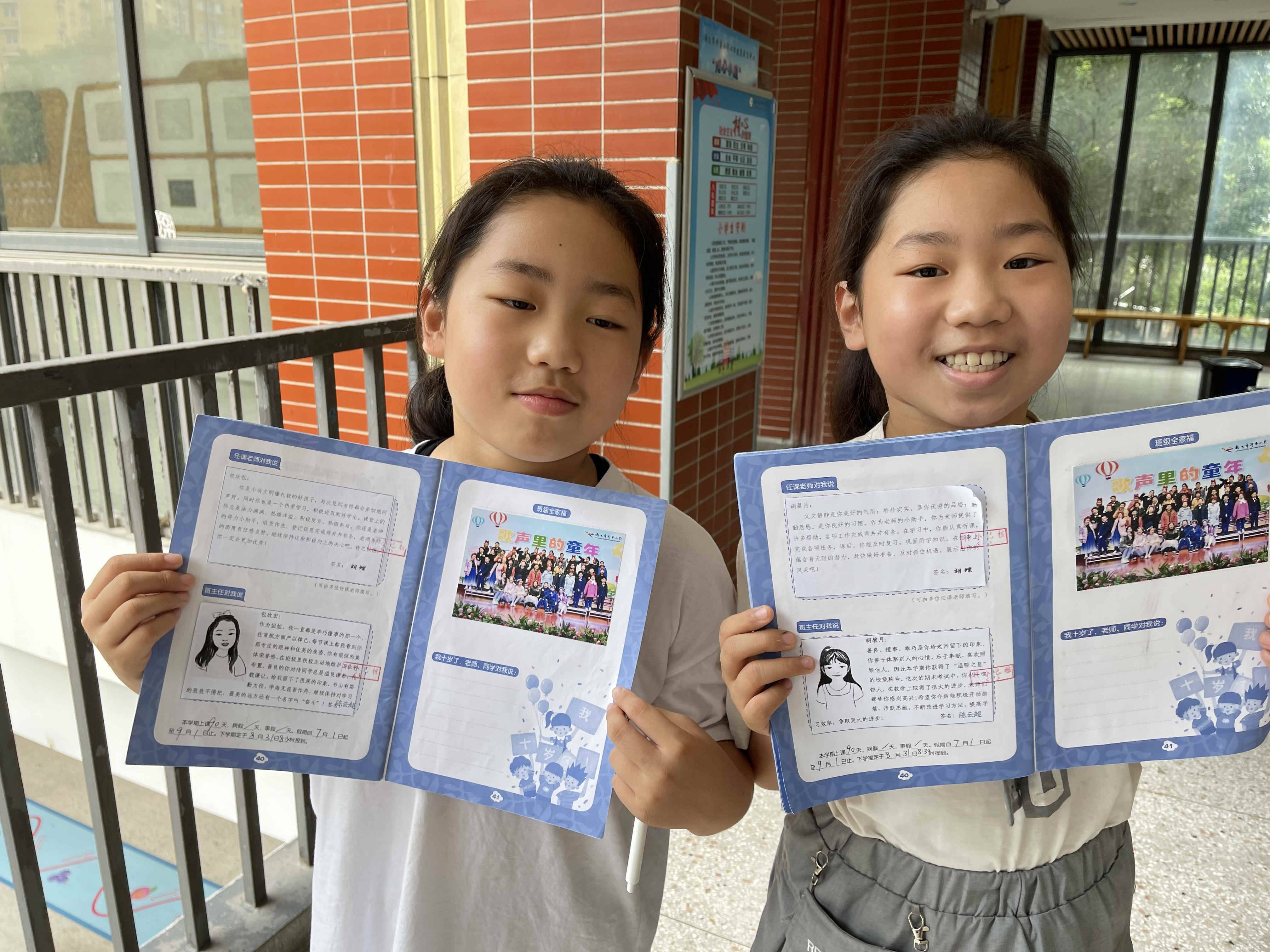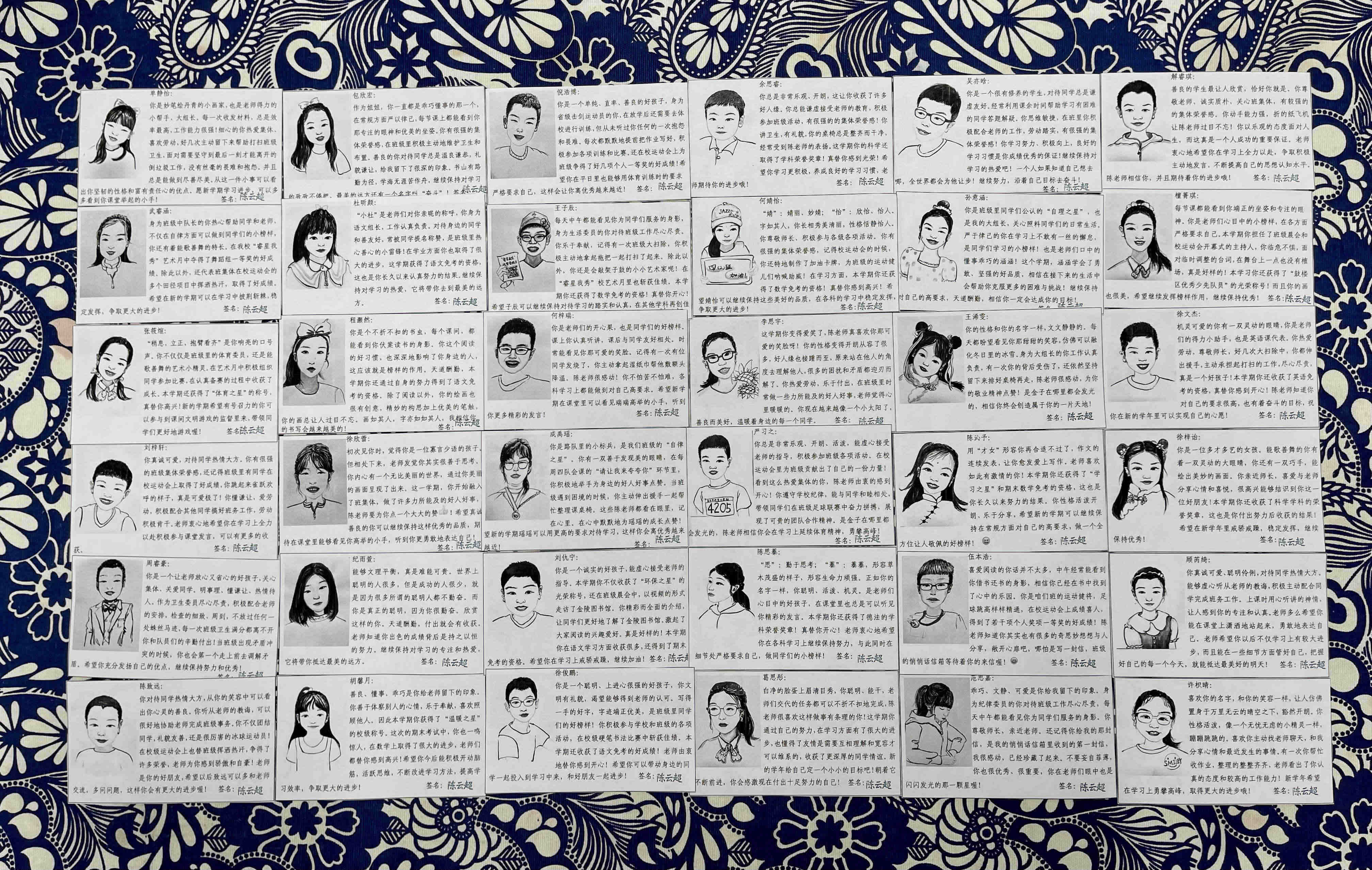为了画好这些肖像画,陈老师不舍昼夜,精心准备,其中还发生了一些有趣的故事。比如说班级里有一对双胞胎姐妹,长得几乎一模一样,平日里就喜欢互相比较。一开始陈老师作画的时候,两幅画比较相似,让人分辨不出谁是姐姐,谁是妹妹。后来陈老师想到姐姐的额头上有颗痣,性格比较沉稳,而妹妹的性格则比较开朗活泼、爱笑一些,又重新执笔为姐妹俩画了新的肖像画,这样两个姐妹既相似、而又有所不同了。还有的孩子性格比较内向腼腆,陈老师特地在评语中穿插了可爱的小表情,希望能够和孩子们拉近距离,孩子们更易接受这样的一种评价方式。