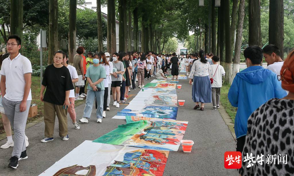 扬子晚报网7月7日讯(通讯员 朱锦 志国 记者 万凌云) 最近,江苏农林职业技术学院镇江句容茅山校区300余名大学生,历经一个月绘制完成了38幅手工彩绘画。他们用一种特别的方式,展示了党的百年发展历程。大学生们在参与的过程中,学知党史、感念党恩,表达跟党走的坚定信念和决心。