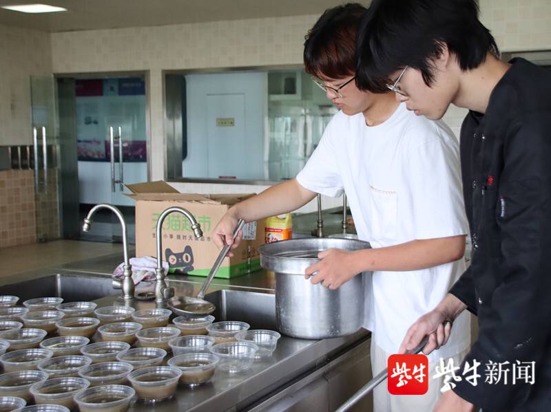 扬子晚报网7月21日讯(通讯员 单炜华 张思怡 记者 陈咏)一年中最为炎热的大暑节气到来,扬州大学旅游烹饪学院新“食”代美食文化寻味团与“味至浓时”实践团,发挥专业特长,亲手熬制100份高品质绿豆汤,冰镇后送给校园里暑期坚守岗位的叔叔阿姨,给宿管阿姨、保安大叔、建筑工人们送去清凉。