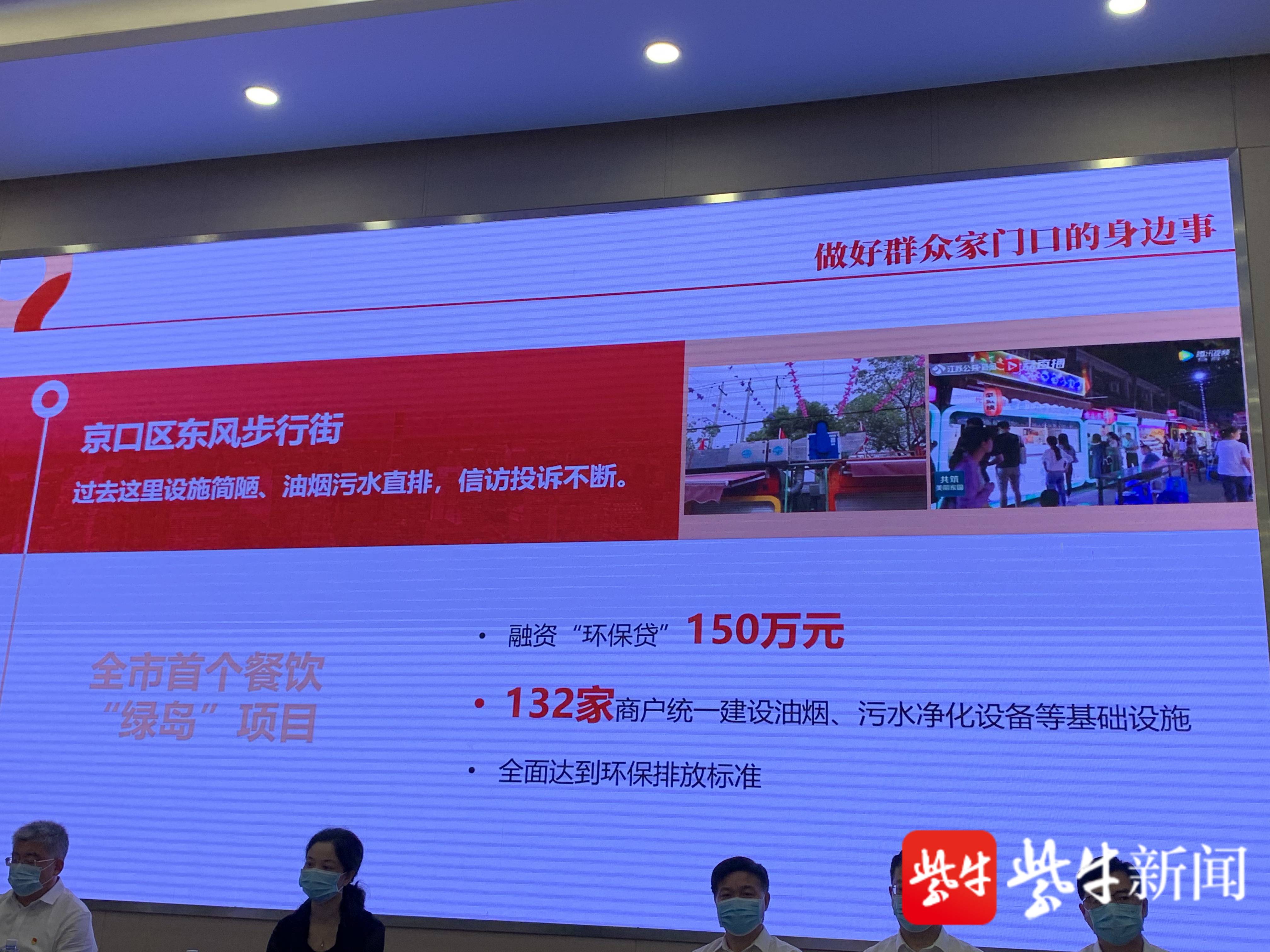 成杰介绍,镇江京口区东风步行街毗邻江苏大学,以餐饮特色成为市民和学生喜爱的网红打卡地。但过去这里设施简陋、油烟污水直排,信访投诉不断。对此,他们将该街作为全市首个餐饮“绿岛”项目,融资“环保贷”150万元,对132家商户统一建设油烟、污水净化设备等基础设施,达到环保排放标准,极大方便了周边群众的生活和创业。