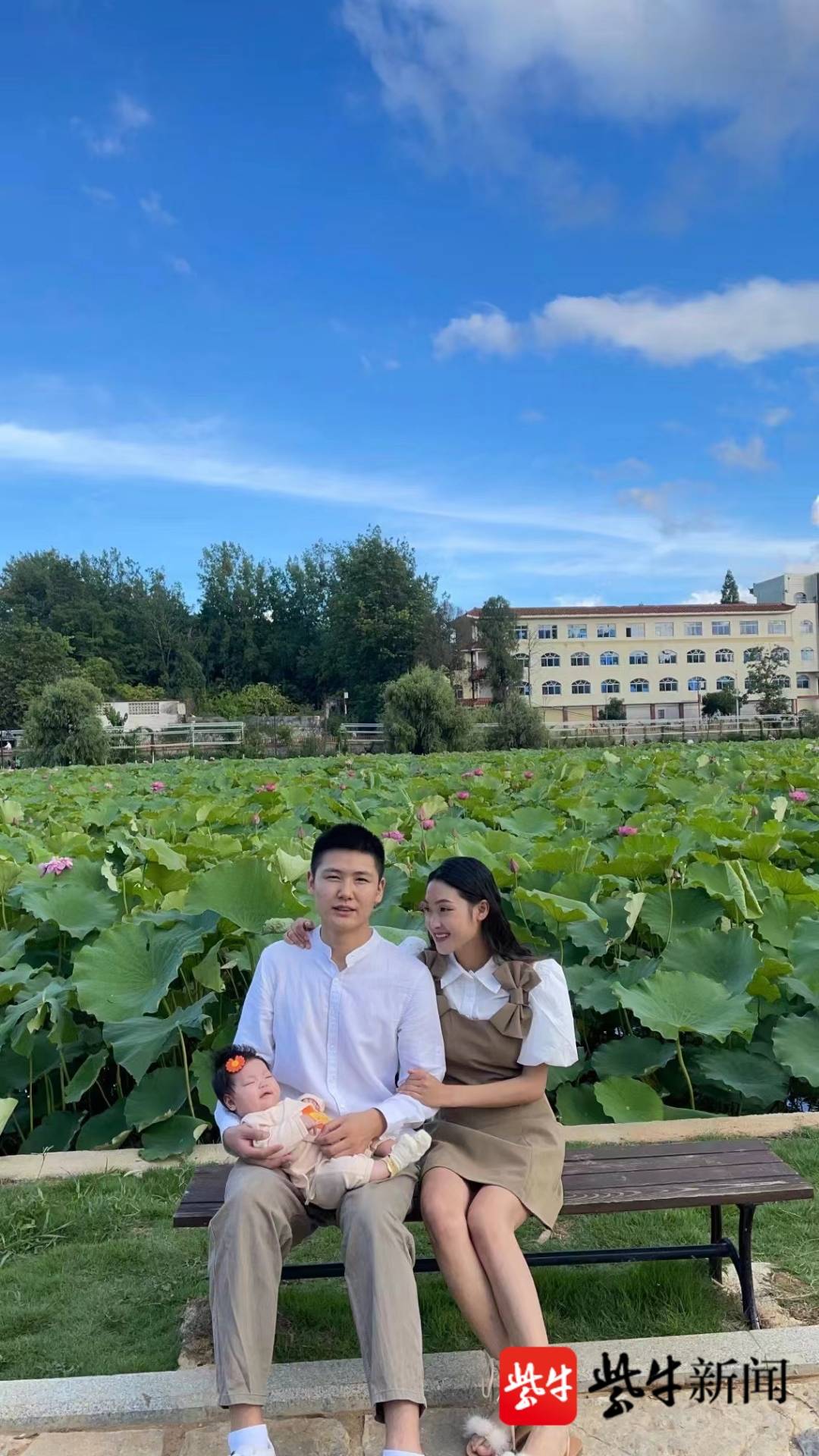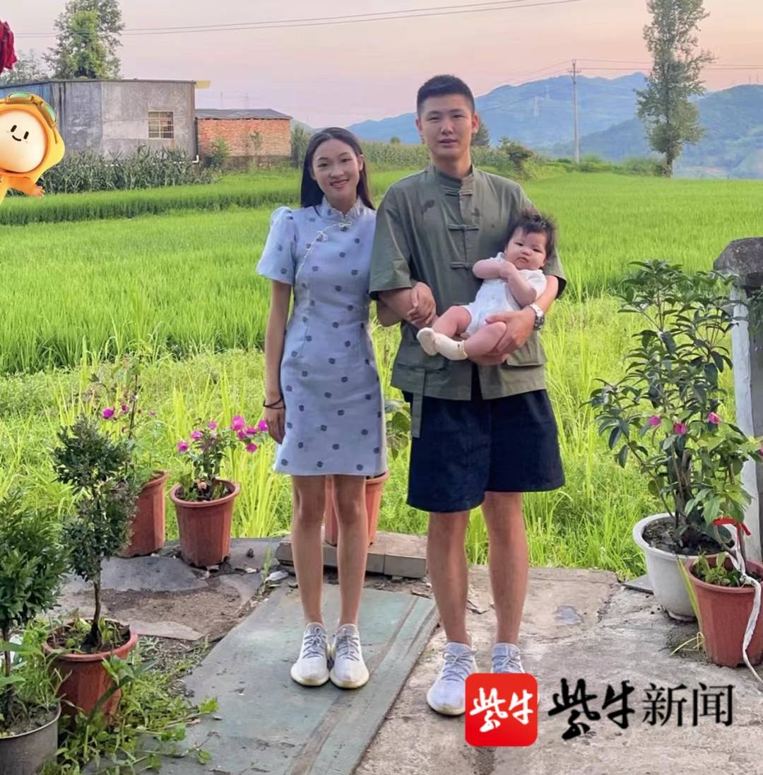 从两个人拍到三个人,今年4月,孩子出生后,一家三口又特意去拍摄了一段新的“鞠躬礼”视频,胡丹告诉记者:“这是我最喜欢的一段。”视频中,她抱着孩子,老公伸出手弯腰鞠躬时,她一手托着孩子,一手立马抓着了他的手。