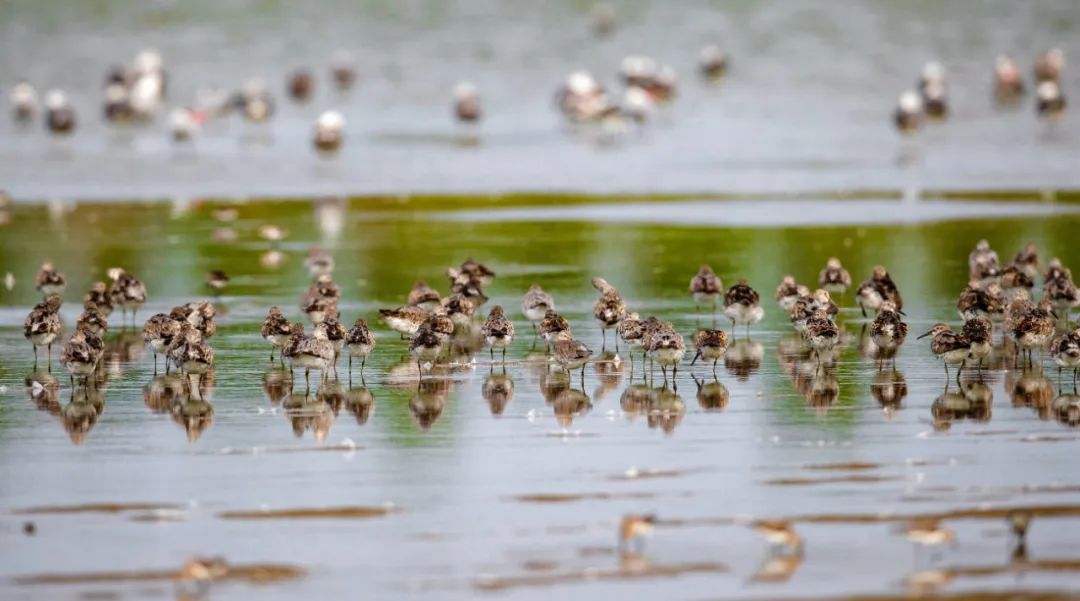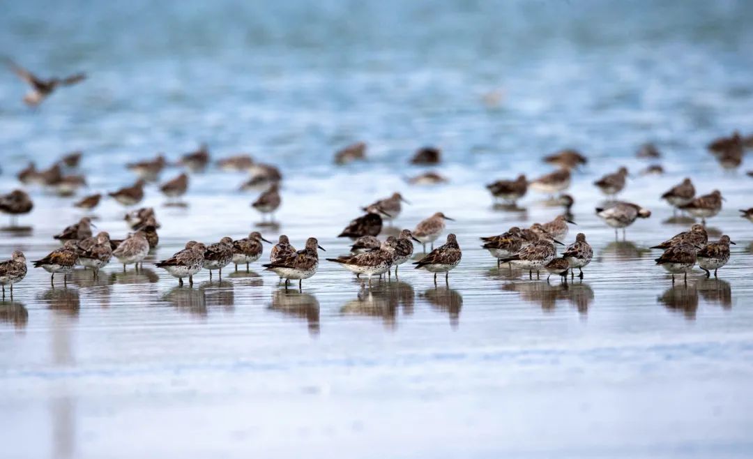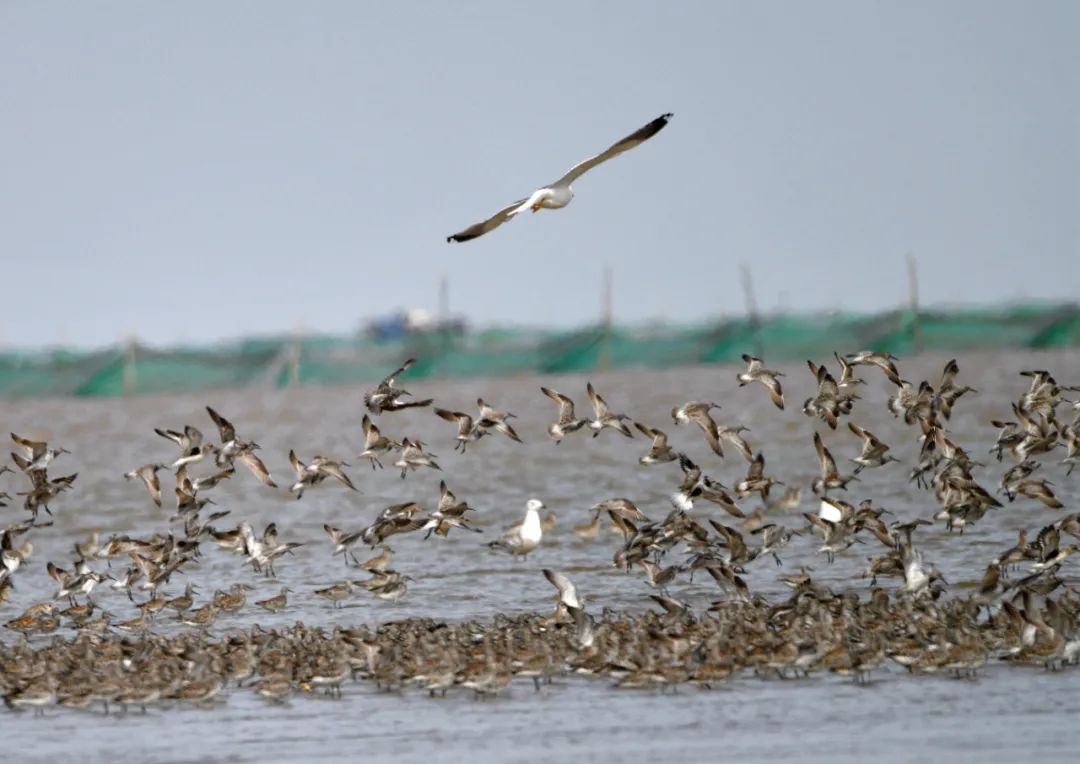 每年的春秋季,数以万计的鸻鹬类、鸥类、鹭类、鹟类等鸟类,都会从北极圈的苔原带飞到东南亚乃至澳洲,而江苏沿海的滩涂和森林,就成为了它们迁徙途中的必经之地。东台条子泥湿地是这其中重要的中转站,这些候鸟将在这里停歇休整,补充能量。