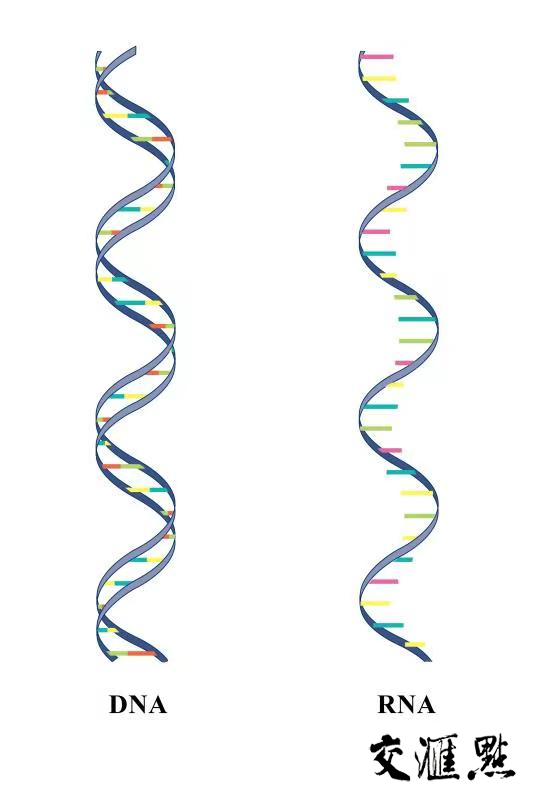 构成核酸的基本单位是核苷酸,含三个组件:一个含氮碱基、一个戊糖和一个磷酸基团。若戊糖为核糖,则该核酸为核糖核酸,即RNA;若戊糖为脱氧核糖,则该核酸为脱氧核糖核酸,即DNA。DNA和RNA的化学结构、空间构象不同,导致二者具有不同的生物功能。