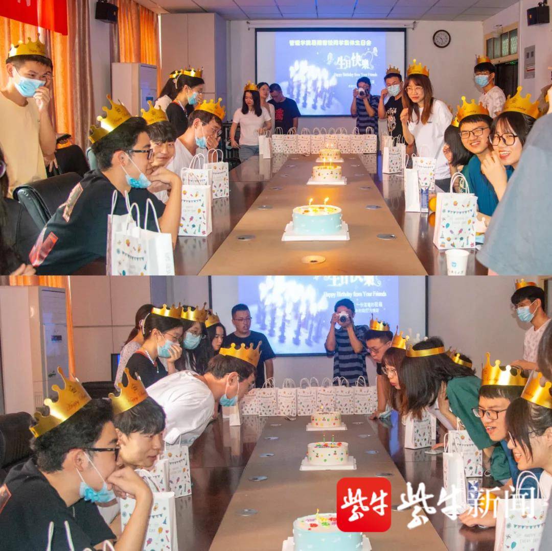 生日会现场,郭强和2018级辅导员老师华阳、丁仪一起,为寿星们派发了生日惊喜,此外,学院还给所有260多名暑期留校备考的学生都准备了礼物。