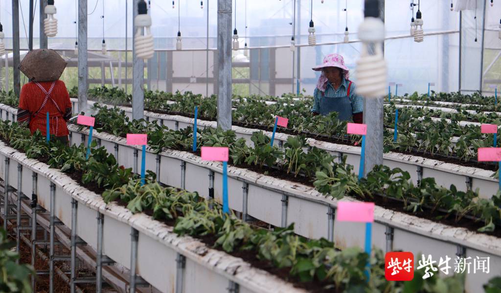 一方面新技术在果农们中推广,另一方面新品种也在培育当中。在句容白兔镇徐村草莓种植基地里,由江苏省农科院自主培育的紫金早玉、紫金芳玉、紫金久红等一批新品种,正在这里进行试种。江苏省农业科学院研究员赵密珍介绍:“现在选的品种,成熟期要更早一点。成熟期早的话,它价格高,效益更高。现在我们早的10月底、11月初就有成熟的品种上市了。”