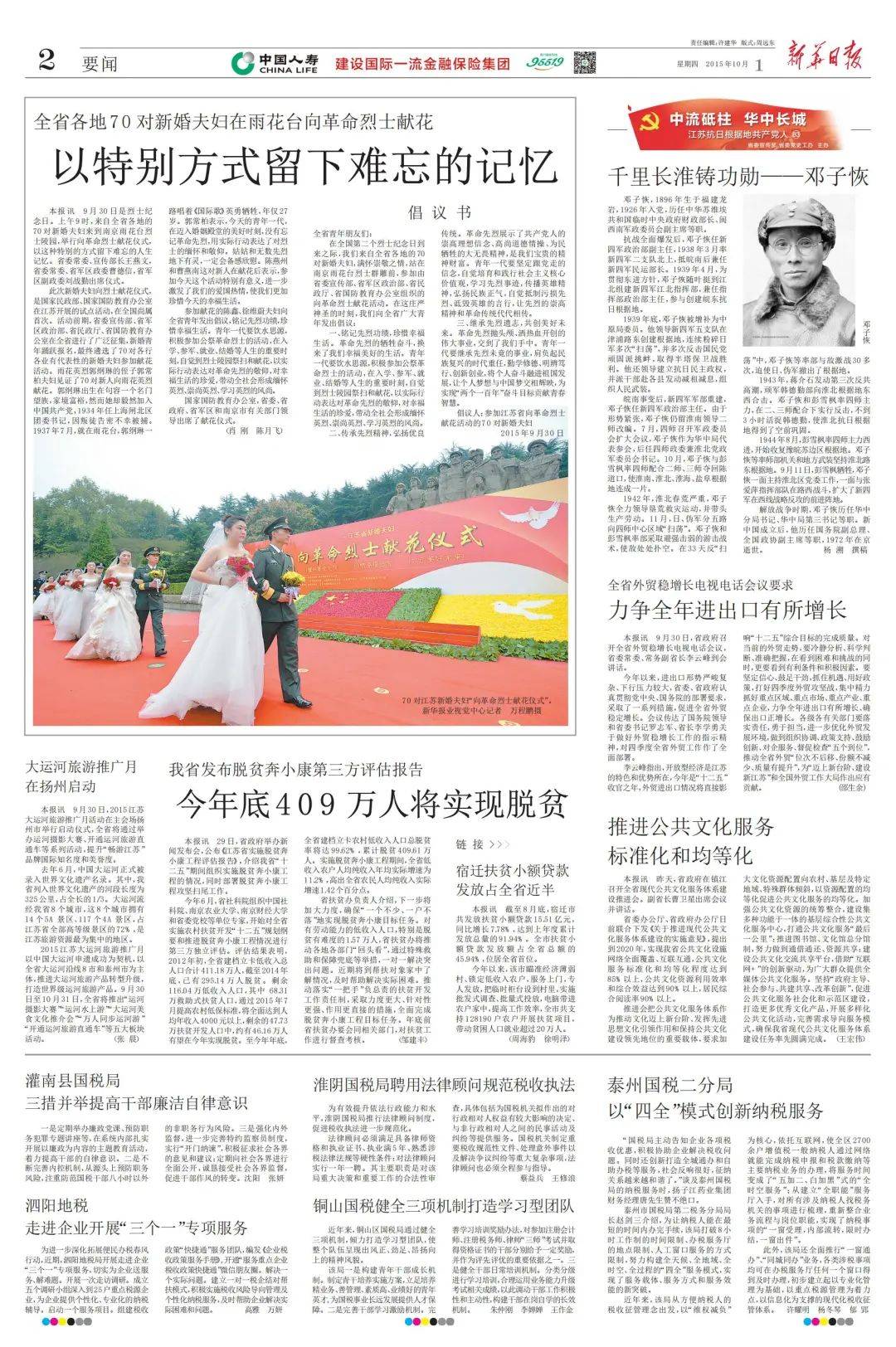 版面左边栏,辛仲平署名文章《今看东方盛世还——献给新中国七十华诞》展现了江苏大地70年来的沧桑巨变,谱写了江苏人70年砥砺奋进、求索探路的奋斗史诗,读来让人心潮澎湃。版面右下角,一则“盛典看点”贴心地为读者提供当天庆祝中华人民共和国成立70周年大会、阅兵式等重大活动的时间和基本信息。