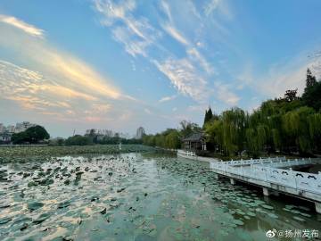 一夜凉寒一夜秋,在迟来的桂花香气里,我们迎来了秋天的最后一个节气——霜降。秋风渐凉中,扬州城的深秋风光一天美过一天。傍晚时分,荷花池公园内,石桥、残荷、水榭……在斜阳余晖的“渲染”下,浓浓秋意扑面而来。秋将逝,冬欲来,扬州秋色,且赏且惜。(史盼盼 摄)