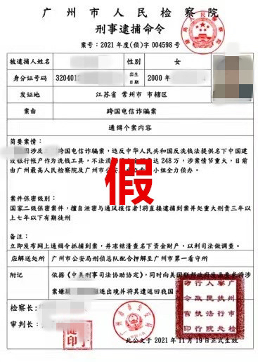 小王与“广州刑警”通过FaceTime联系,接受讯问,期间收到了冻结令、逮捕令两份文书,上面称小王涉嫌电信网络诈骗。随后她又接到一个境外电话,对方称是“国际刑警”,代表联邦政府要实施抓捕。