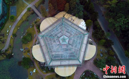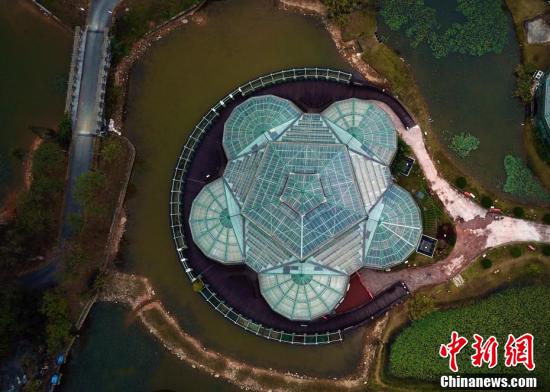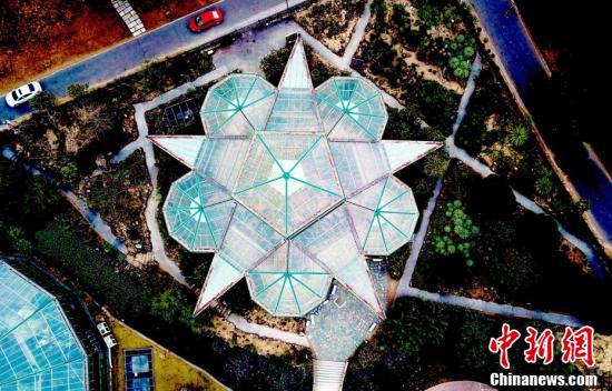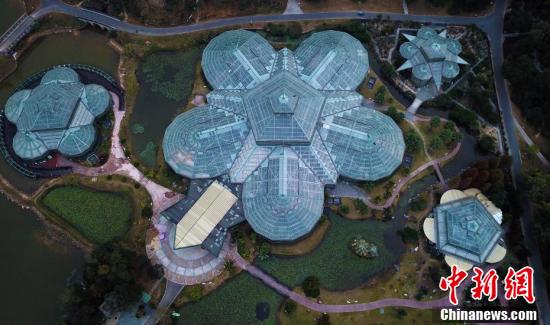 12月25日,航拍位于广东省广州市的中国科学院华南植物园温室群景区,酷似“外星人基地”。该温室群景区分为热带雨林室、沙漠植物室、高山植物室和奇异植物室,景区占地7.5万平方米,是亚洲乃至世界最大型的植物景观温室群,共收集来自世界各地的珍奇植物约3500种。中新社记者 姬东 摄