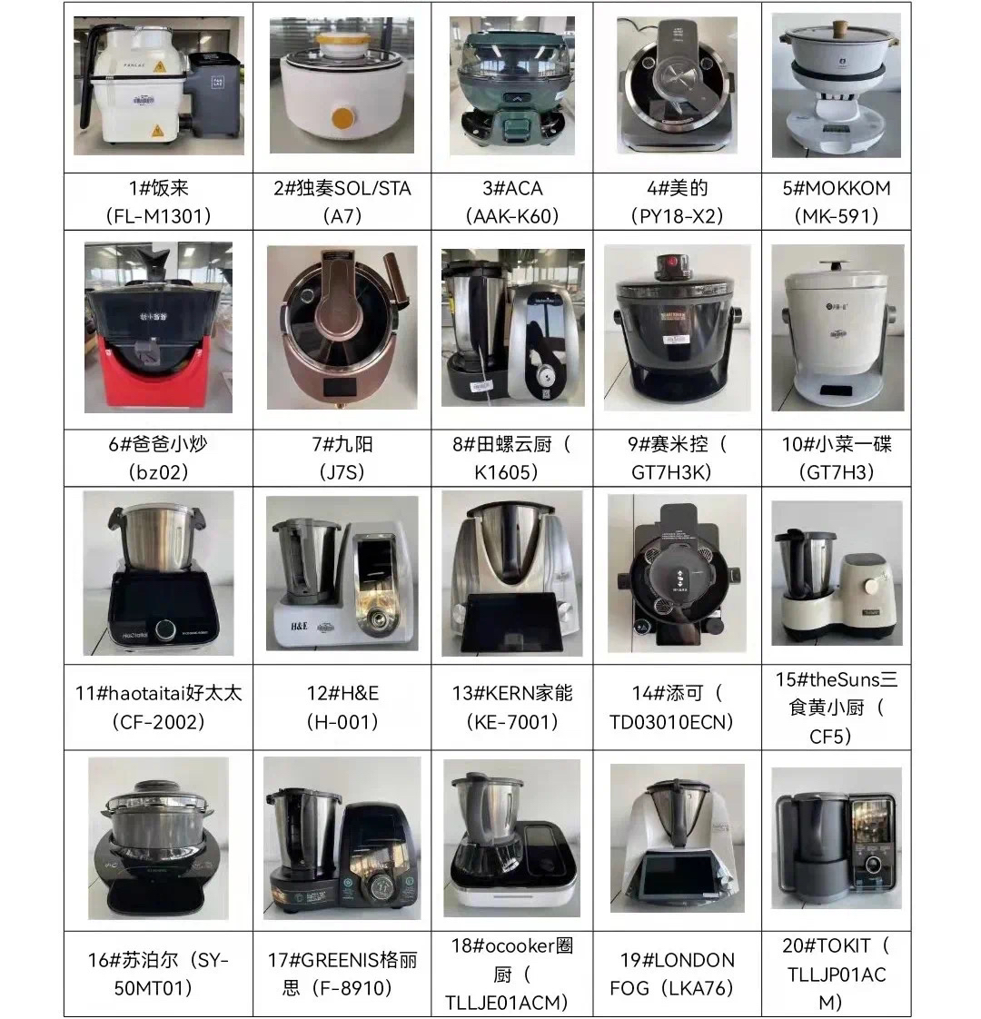南京市消协从线下实体店(苏宁易购、京东五星)、主流电商平台(京东商城、淘宝网、天猫商城)等渠道购买了20款样品,销售单价从799元到12180元不等,涵盖了市面上有销量的20个品牌,18个生产厂家。记者注意到,这20款智能料理机均宣称健康无油烟或少油烟,12款宣传信息中包含易清洁等类似字样,多款产品明示翻炒均匀且热效率高。