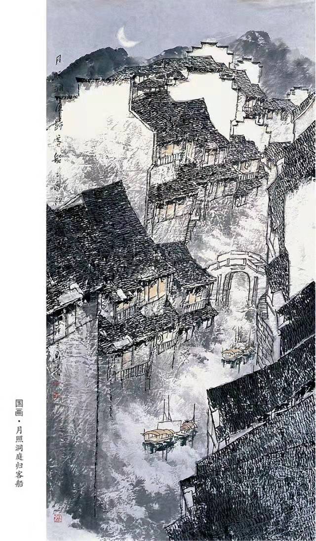 在我看来,有些速写本身就可视为创作,构图布局颇为讲究。事实上,史国富有部分山水画创作正是在速写基础上稍作加工而成的。如速写《暮归》后来演变为创作《玉女山庄》;速写《月落乌啼》后来直接演变为同名创作。这两幅画都已成为他的代表作品。正是功力与眼力的双重优势,促成了史国富山水画意境美和笔墨美的协调统一。从画法上看,是写实与写意的结合;从造型上看,是形似与神似兼备;从境界上看,是现实与理想的交融。