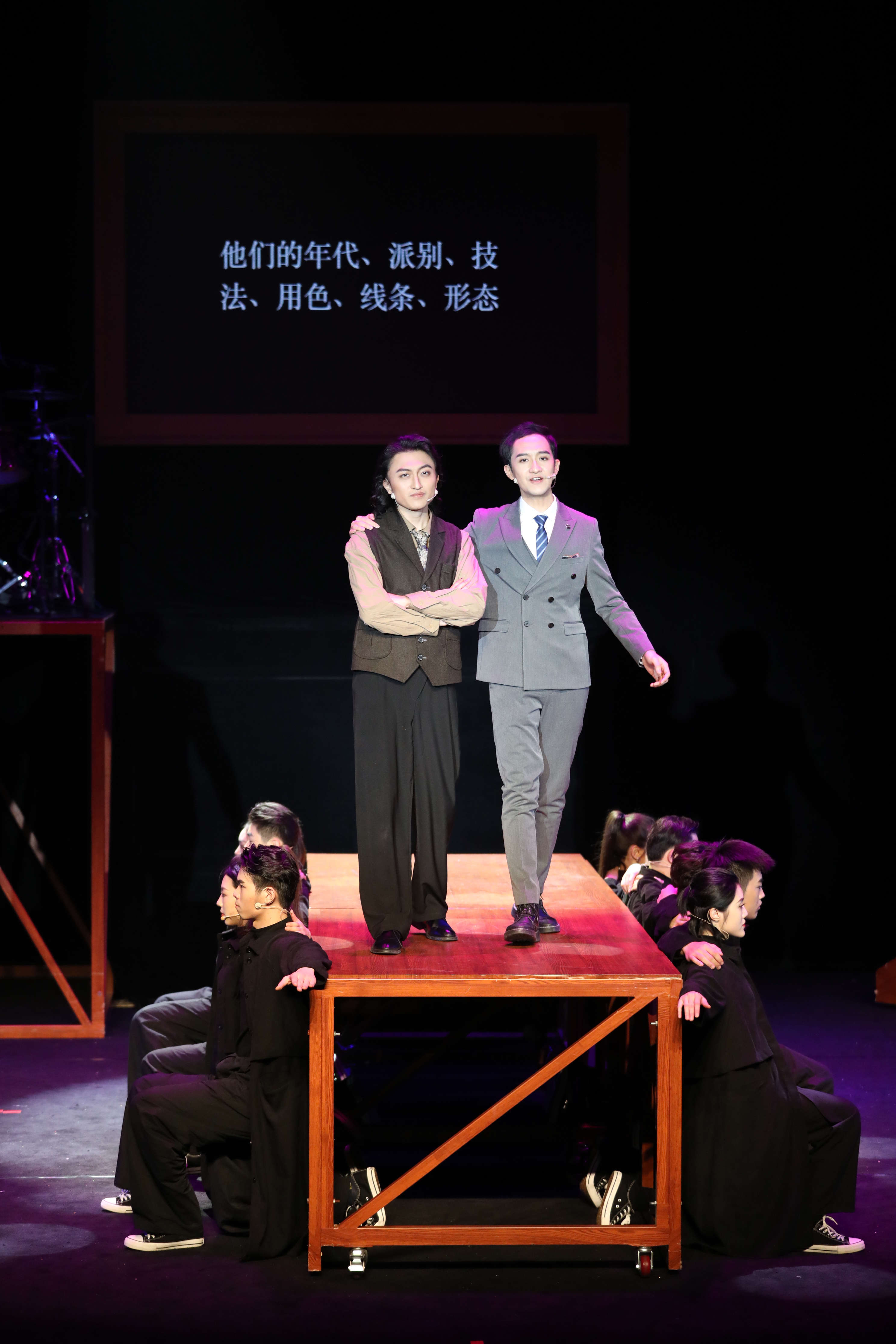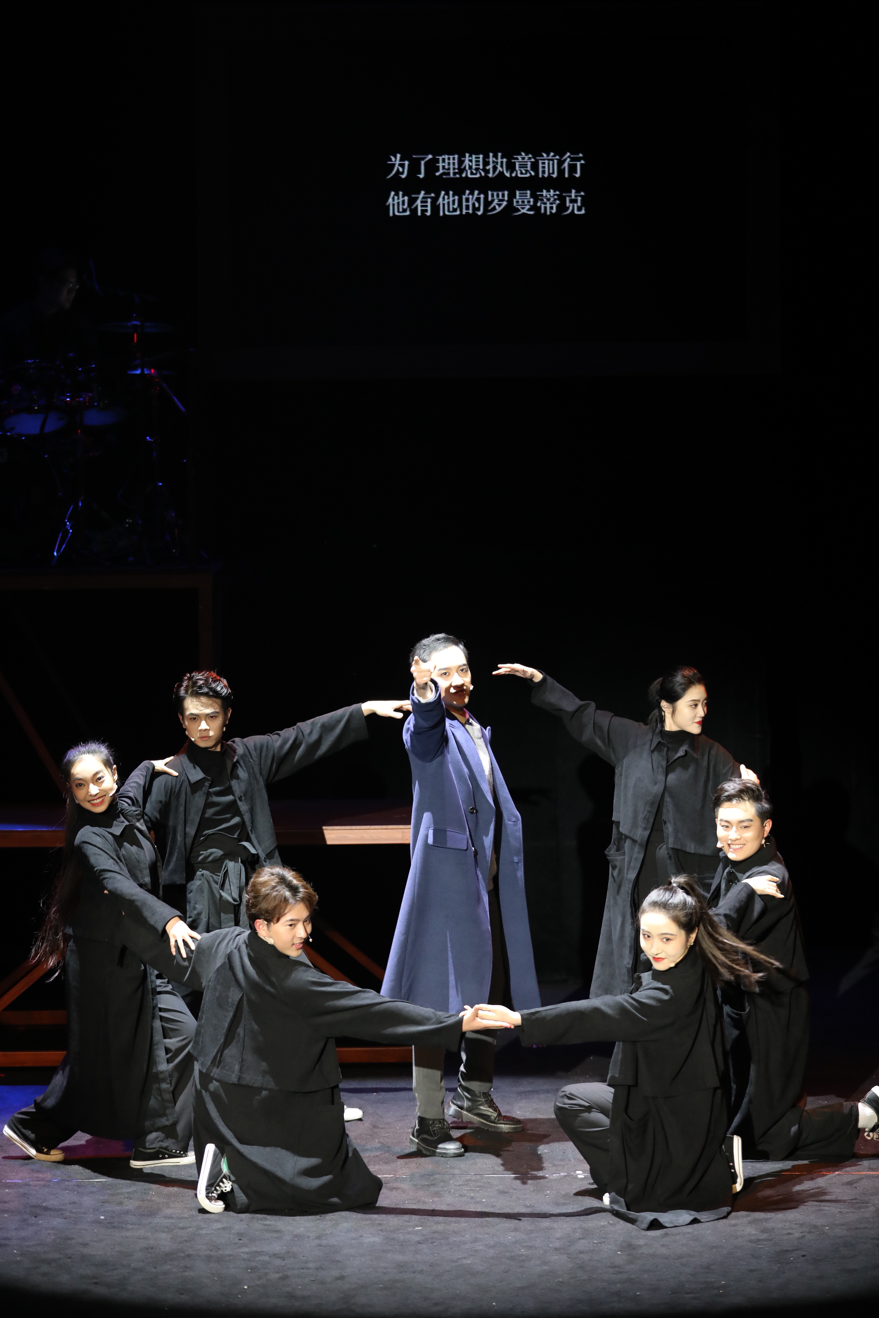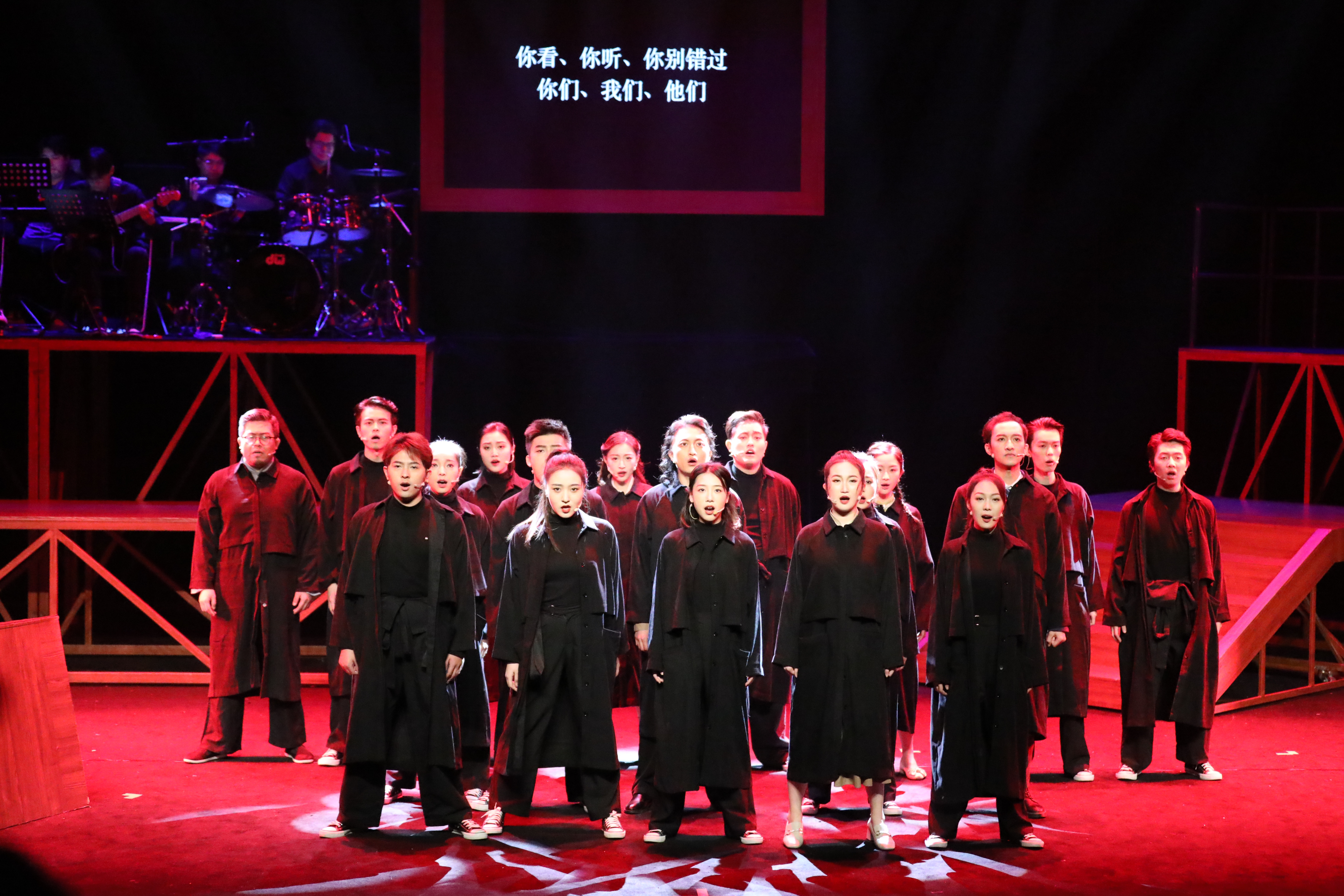 记者看到,音乐剧中的演员几乎都穿着黑色衣服,不停变换着角色,时而变身上海街头的市民,时而变身学校里行走的学生。