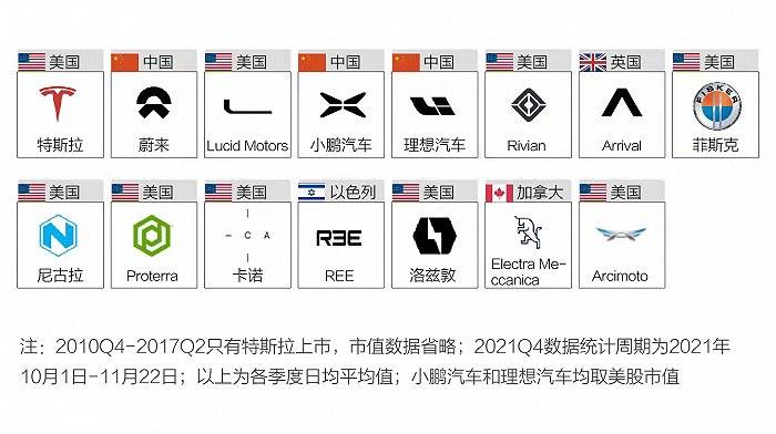 截至12月22日,美国大型上市汽车公司主要有特斯拉、Rivian、通用、福特和Lucid五家,对应市值分别为约9425亿美元、863亿美元、795亿美元、784亿美元和626亿美元。
