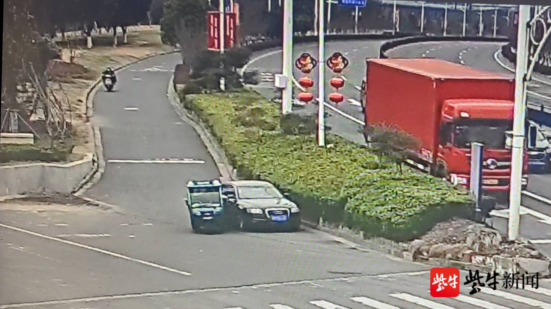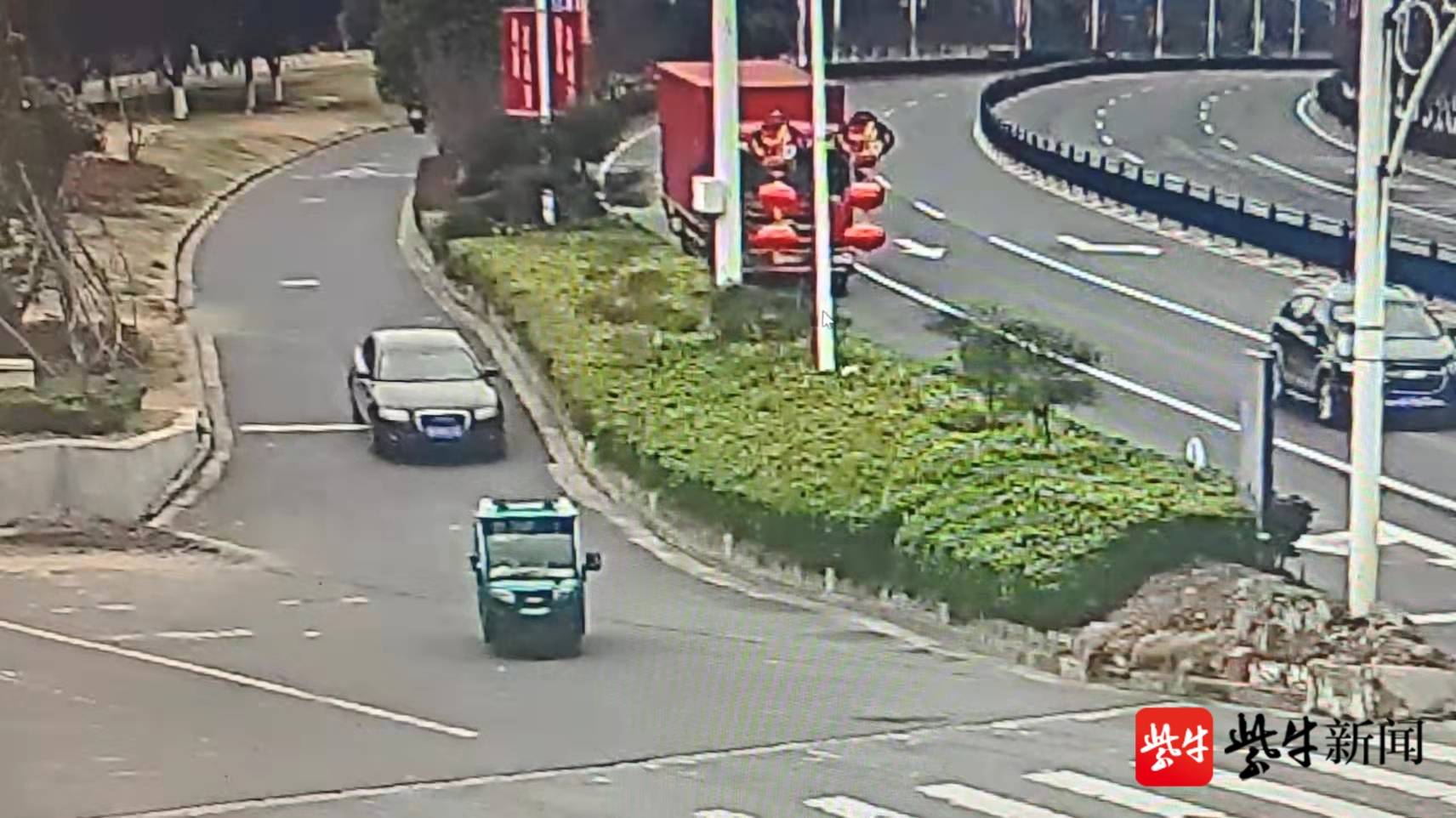 随后,民警通过视频监控发现,此次事故是由申某驾驶电动三轮车倒车,正好撞到了杨某正在等红灯的轿车。