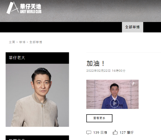 刘德华的粉丝官网“华仔天地”截图。