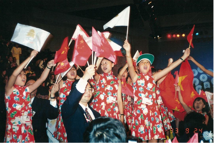 1993年北京爱乐合唱团的孩子在申奥现场为北京加油