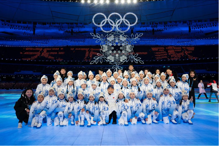 北京2022年冬奥会开、闭幕式总导演张艺谋与北京爱乐合唱团的孩子们合影