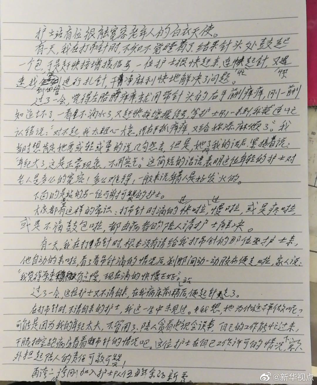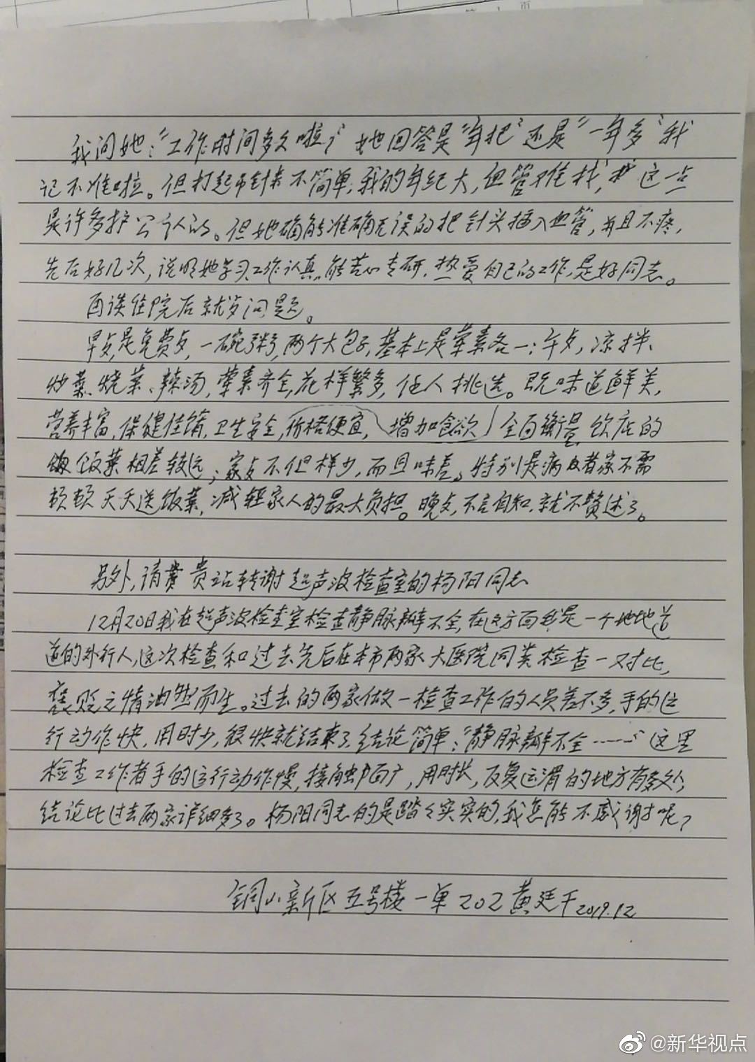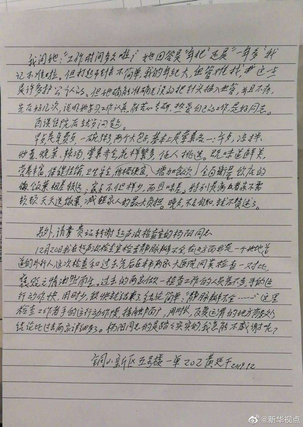 “老人眼底有黄斑病变,视力不太好。之前,护士看到他拿着放大镜在写这封信,一笔一画写得很吃力。”韩献军说。