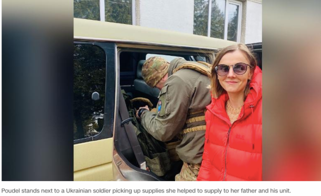 本次俄乌冲突爆发后,普德尔父亲的部队极度缺乏基本的防护装备和医疗物资。因此,31岁的乌克兰裔美国公民普德尔暂时放下她在加利福尼亚州的律师工作,向公司请了假。她随后去了波兰,为父亲及其团队成员筹集了约100双靴子,价值1.3万美元。