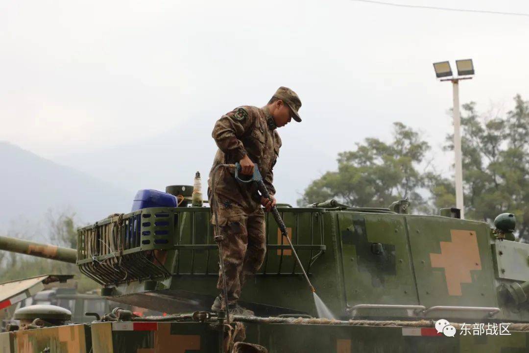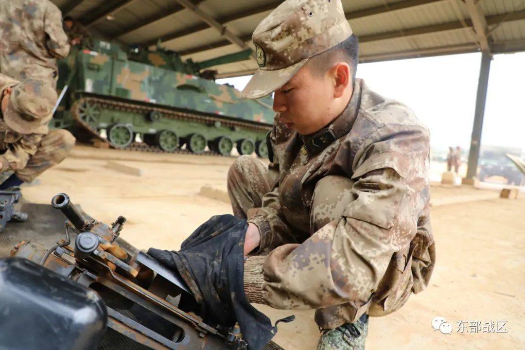 射击结束后,官兵们迅速转移阵地,对装甲车辆进行保养。
