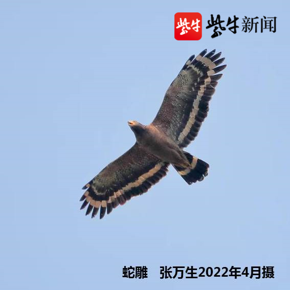 除了吸引“东方鸻”过境,扬州今年也首次迎来了“蛇雕”,它是处于食物链顶端的猛禽,以蛇为主食,被称为鸟类中的“战斗机”,是目前为止扬州市记录的唯一雕类。