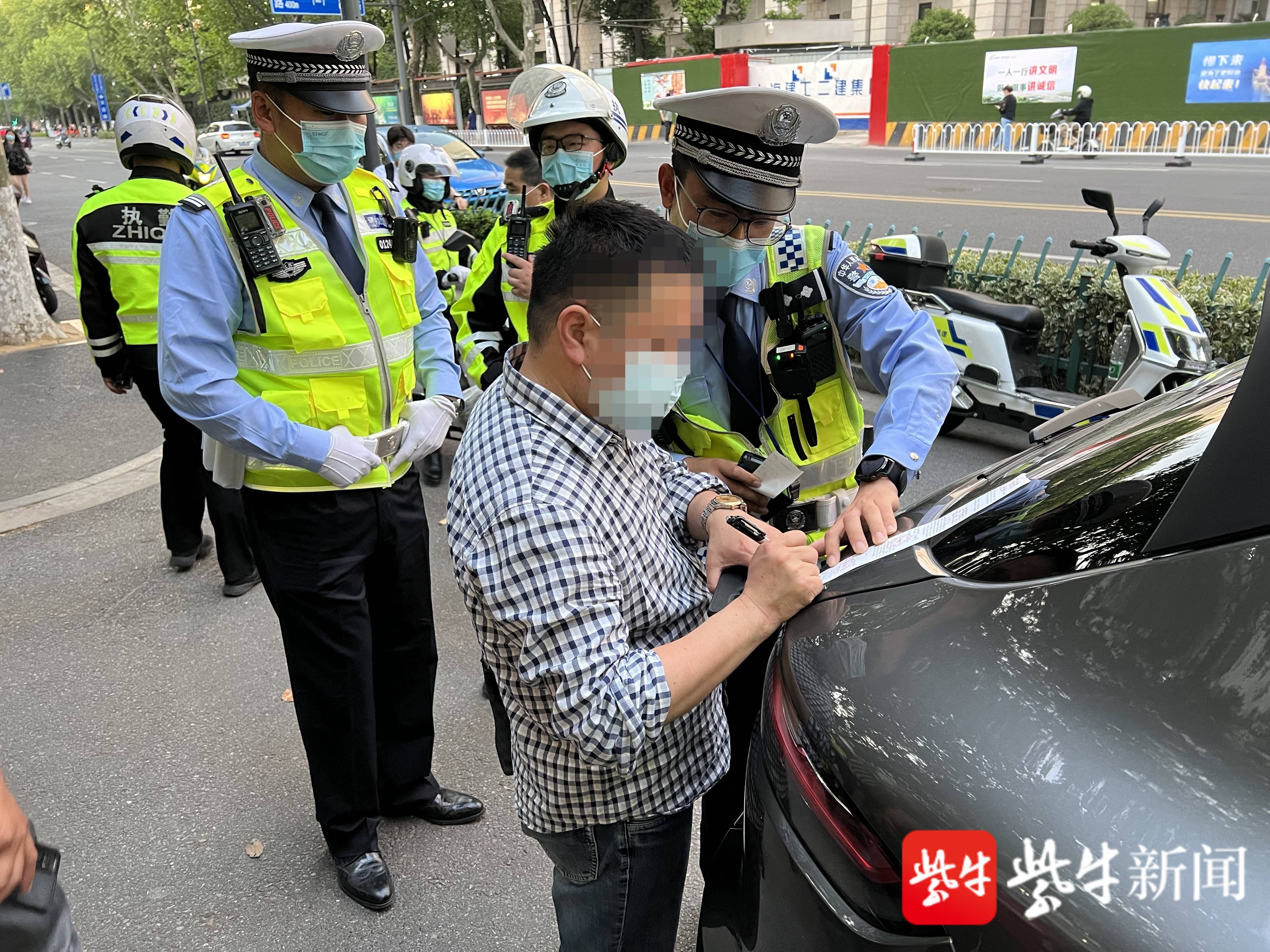 南京交警五大队民警,前不久在宁海路执勤时,发现一辆违停车辆。上前做进一步核查时,民警还发现该车后侧车牌被毛巾遮挡着。正当民警对车辆查询相关信息时,车主与其朋友到达现场。通过询问,民警得知,车主沈某与朋友在一旁饭店就餐,找了许久都没找到停车位,便将车辆违停在路边,由于看到路边有摄像头,怕车辆违停被抓拍,便心存侥幸,用抹布将车辆后方车牌遮挡起来。在吃饭期间,沈某发现抹布掉落,又跑出来重新将抹布盖上。