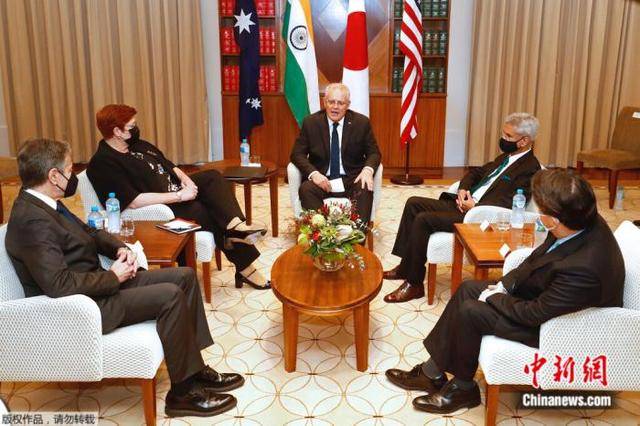 资料图:当地时间2月11日,在澳大利亚墨尔本举行的美日印澳“四边机制”(QUAD)外长会谈。