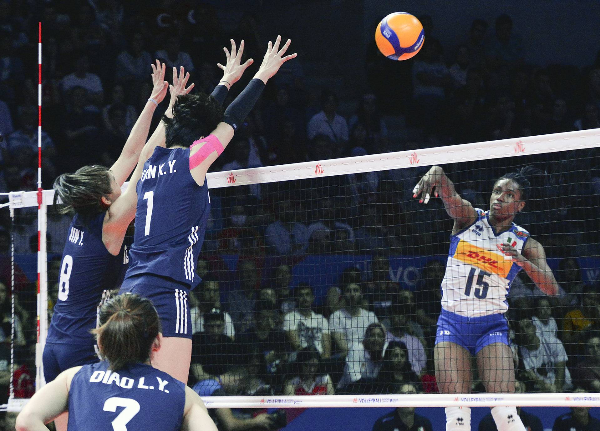 全场比赛,意大利队在进攻环节失误送给中国队17分,发球也送了11分的大礼。中国队全场比赛失误仅送给对手11分。拦网环节,中国队对对方两位重点边攻的“照顾”非常到位,多次封死对手的进攻,令对手的进攻效率较之前有所下滑。此外,中国队对意大利名将副攻齐里切拉的拦防也相当到位,令其8扣仅2中,直接被拦死却有3次,效率为负,不得不几次被换下场。