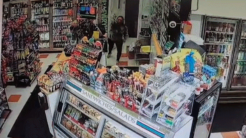 监控视频显示,嫌犯身穿黑色衣服,头戴帽子,脸上蒙着围巾。他走近柜台,并向女店员展示了一把手枪。女店员毫不犹豫地抓起一罐杀虫剂,从柜台后面喷向男子,对其怒吼并驱赶。嫌犯随后逃跑。